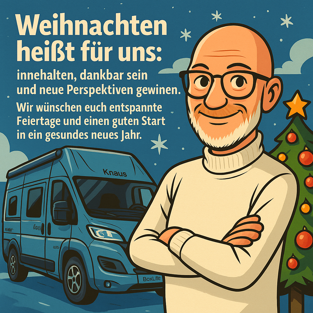 🎄 Weihnachten heißt für uns: innehalten, dankbar sein – und mit Neugier nach vorne schauen.Dieses Jahr habe ich mir als Admin ein kleines Augenzwinkern gegönnt 😊 Als Comic-Version zwischen Camper, Weihnachtsbaum und neuen Perspektiven….Ich wünsche euch entspannte Feiertage, Zeit für das Wesentliche und einen guten, gesunden Start ins neue Jahr. ✨